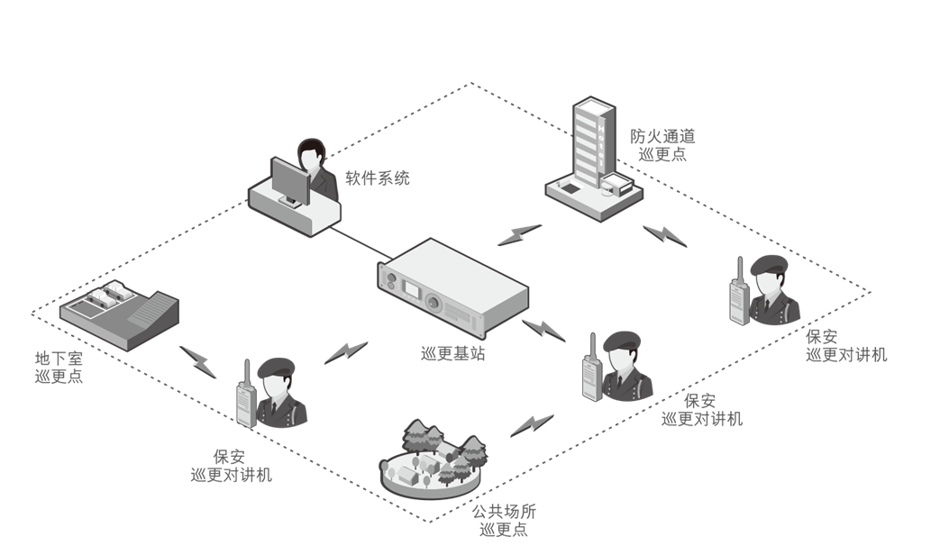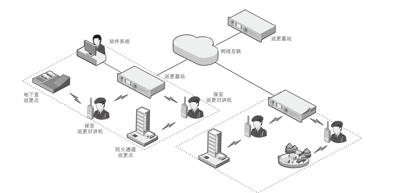 在线巡更:手持终端实时打卡、巡更动态实时后台统计,人员巡更路线实时查询、工作人员电子围栏设置。