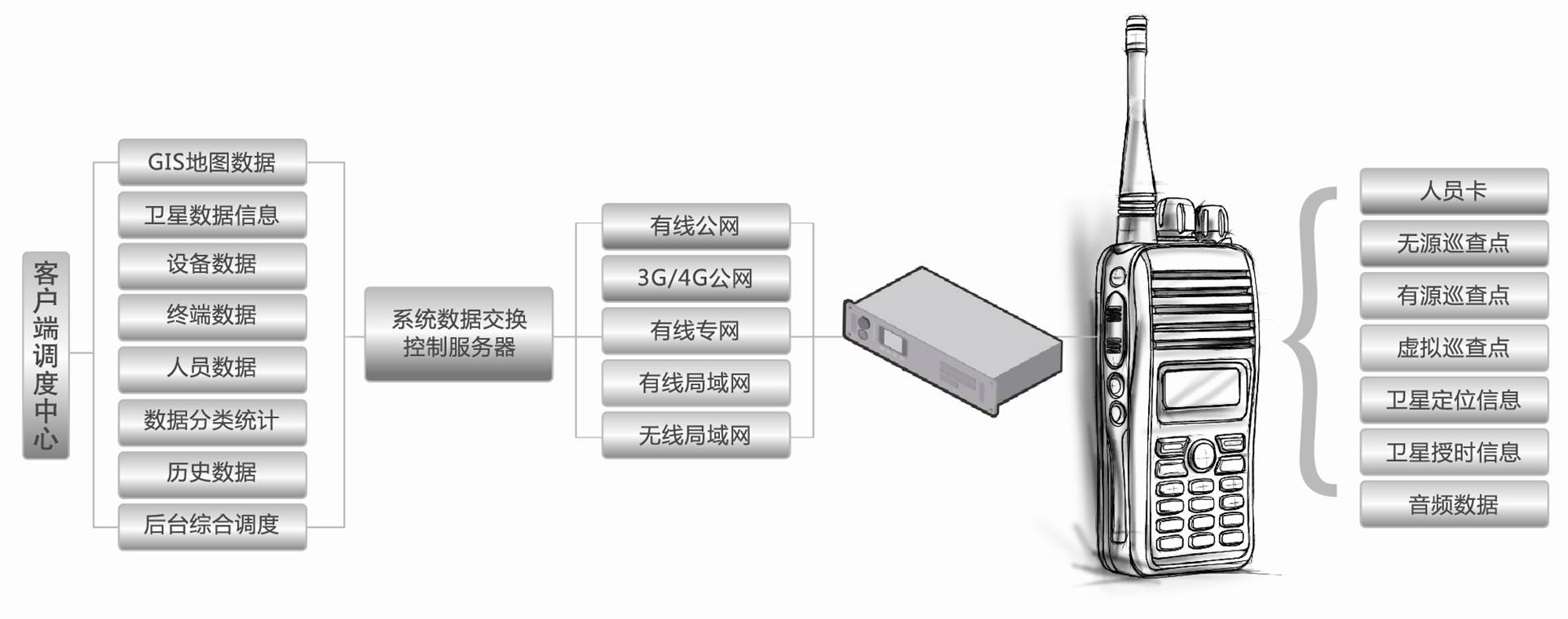 多通道数据信息传输:确保指挥中心与执勤人员实时调度及通话的畅通;