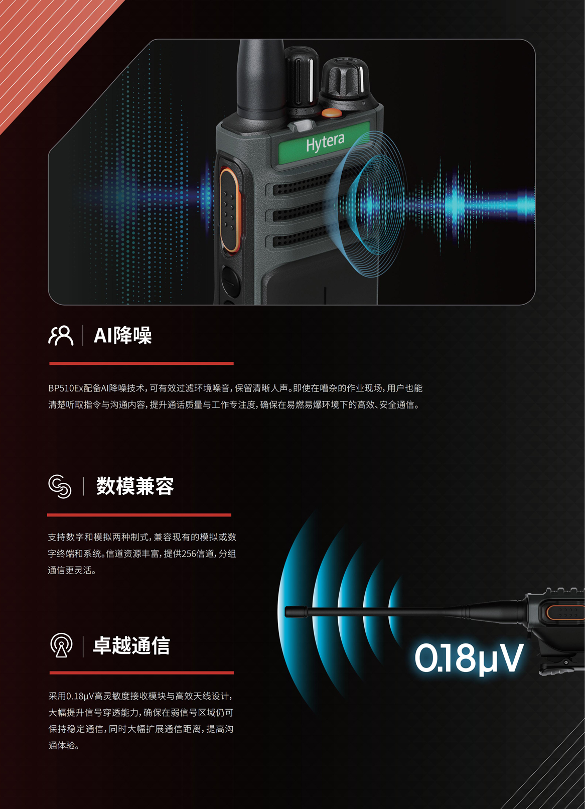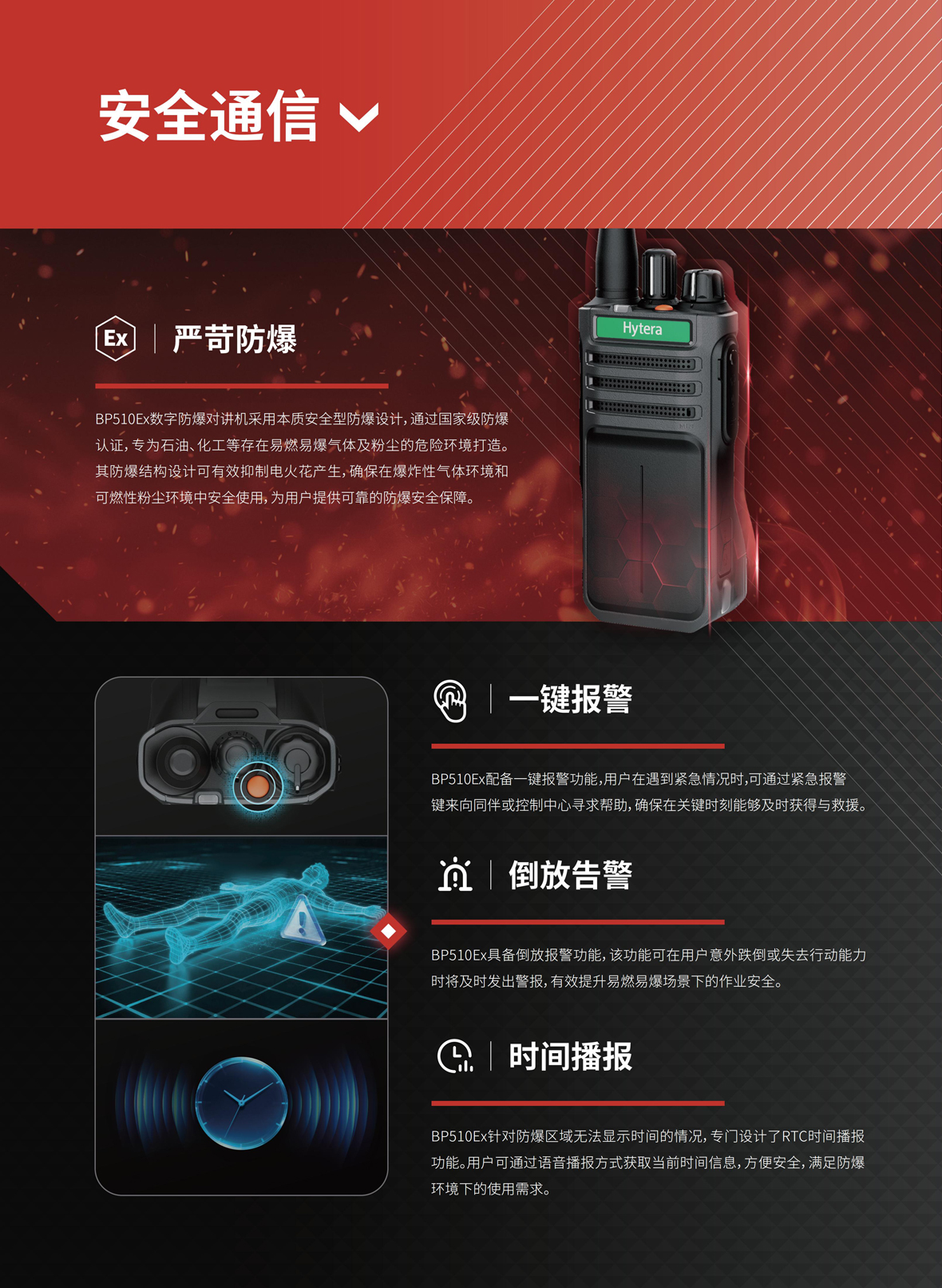 BP510防爆是海能达严格按照中国最新防爆电气标准GB3836(2021版)开发,基于“本质安全性”设计的一款IIB等级防爆对讲机,为石油化工等含有爆炸性、可然性的气体粉尘等高危业务环境提供专业的安全通信保证。HP500拥有高性能,大功率喇叭+AI智能消噪带来的洪亮清晰语音、高容量电池带来的更长工作续航、超高灵敏度以及高标准的抗干扰性能带来的更大通信范围和更可靠的通信保障。Type-C接口进行写频、升级等,同时也可在非防爆区域通过Type-C接口进行充电,大大提升了对讲机管理和使用的便利性。