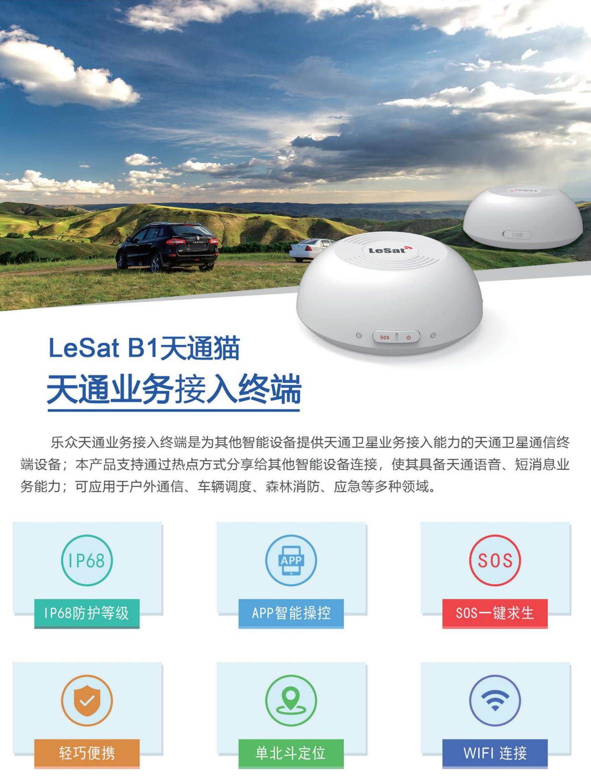 LeSat B1 天通共享设备主要包括主机及配套附件,其中附件主要包括:type-C USB 充电线缆、三包凭证、合格证、说明书等。 |