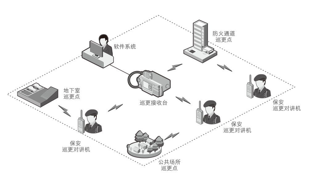 在线巡更:手持终端实时打卡、巡更动态实时后台统计,人员巡更路线实时查询、工作人员电子围栏设置。