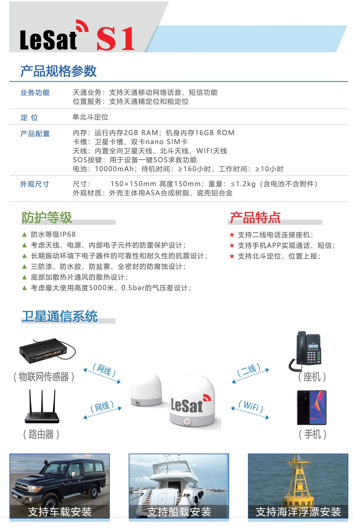 适合应用于所有我国近海、内陆大江大湖船只,保证其二十四小时稳定通信,具有电话、短信、数据传输、双定位系统及一键求生等功能